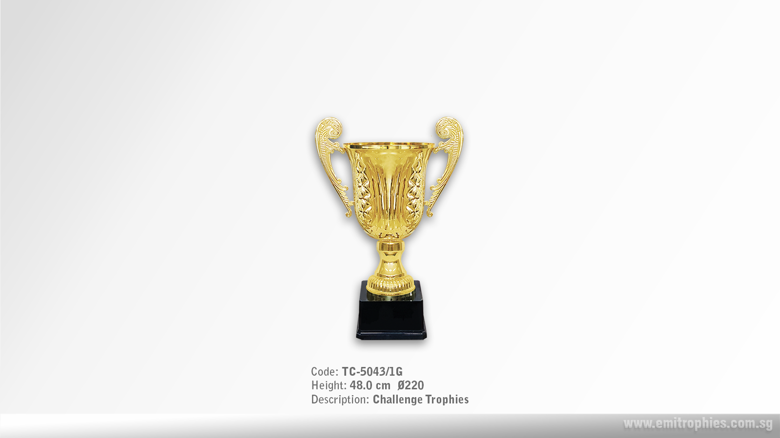 TC-5042 Metal Trophy Metal Trophy Available in 3 sizes TS-5042/1G (Height: 65.0 cm) TS-5042/2G (Height: 72.0 cm) TS-5042/3G (Height: 77.0 cm) Available in 1 colour: Gold