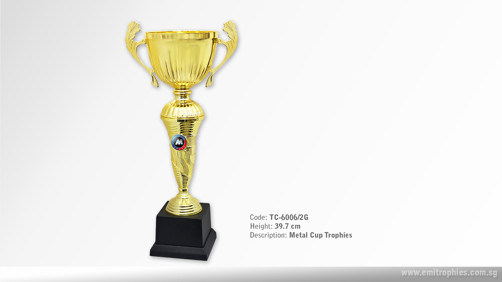 Metal Cup Trophy Available in 4 sizes TC-3040/1G (Height: 33.5 cm) TC-3040/2G (Height: 38.0 cm) TC-3040/3G (Height: 43.0 cm) TC-3040/4G (Height: 47.5 cm) Available in 1 colour: Gold