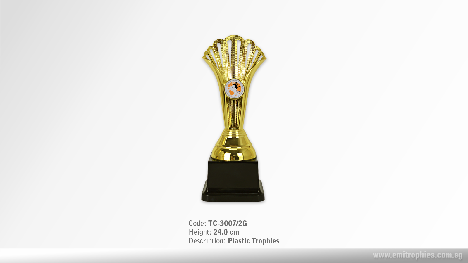 Plastic Cup Trophy Available in 4 sizes TC-3019/1G (Height: 22.5 cm) OUT OF STOCK! TC-3019/2G (Height: 26.0 cm) TC-3019/3G (Height: 29.0 cm) TC-3019/4G (Height: 33.0 cm) Available in 1 colour: Gold