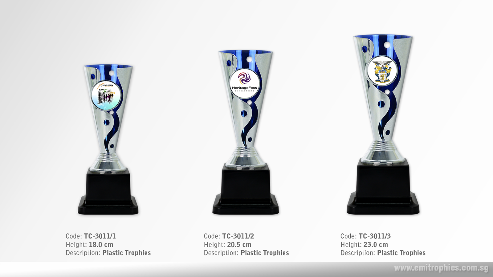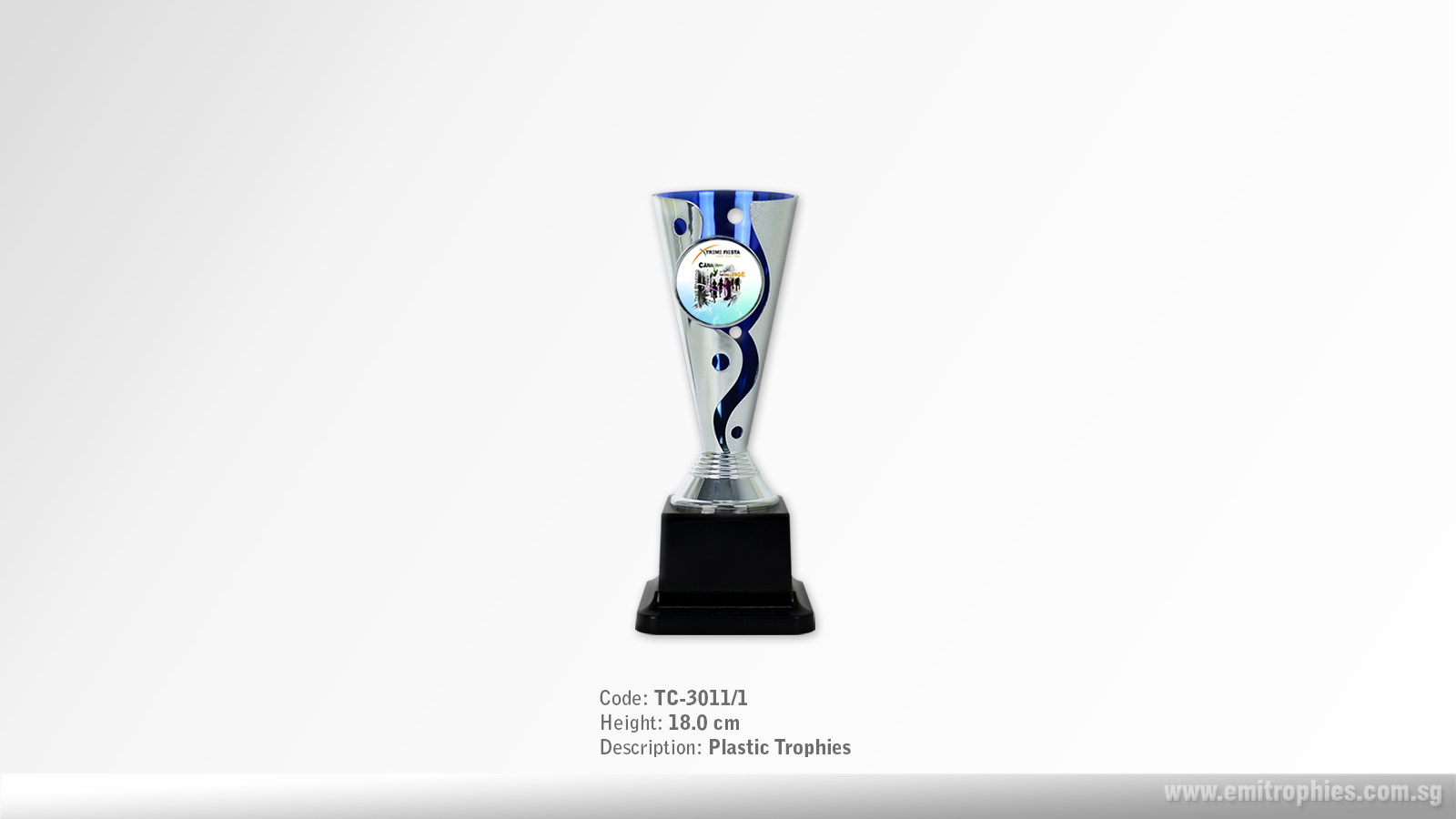 Plastic Holder Trophy Available in 1 size TC-3006/G (Height: 18.0 cm) TC-3006/S (Height: 18.0 cm) TC-3006/B (Height: 18.0 cm) Available in 3 colours: Gold, Silver, Bronze