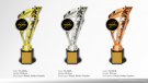 Plastic Trophy Available in 1 size TS-336/G (Height: 22.3 cm) TS-336/S (Height: 22.3 cm) TS-336/B (Height: 22.3 cm) Available in 3 colours: Gold, Silver, Bronze